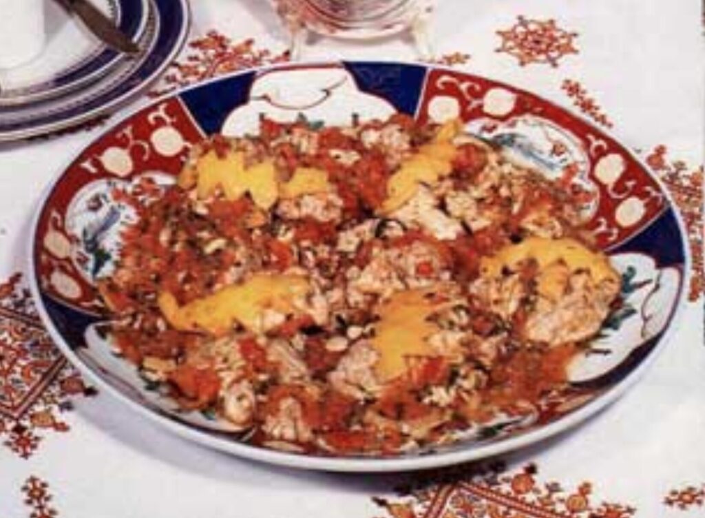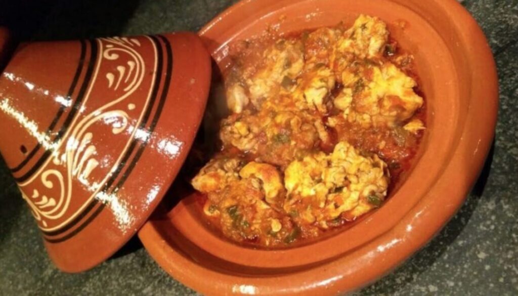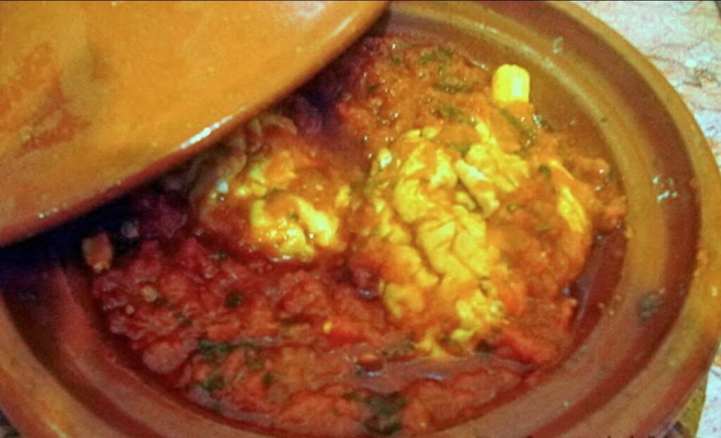 The dish is typically marinated in a fragrant blend of garlic, cumin, paprika, and lemon juice before being simmered gently in a spicy tomato sauce. The result? A silky, savory stew bursting with warmth, depth, and just the right amount of Moroccan spice.