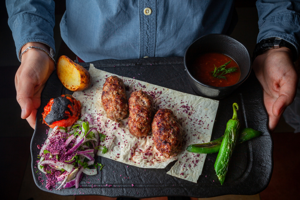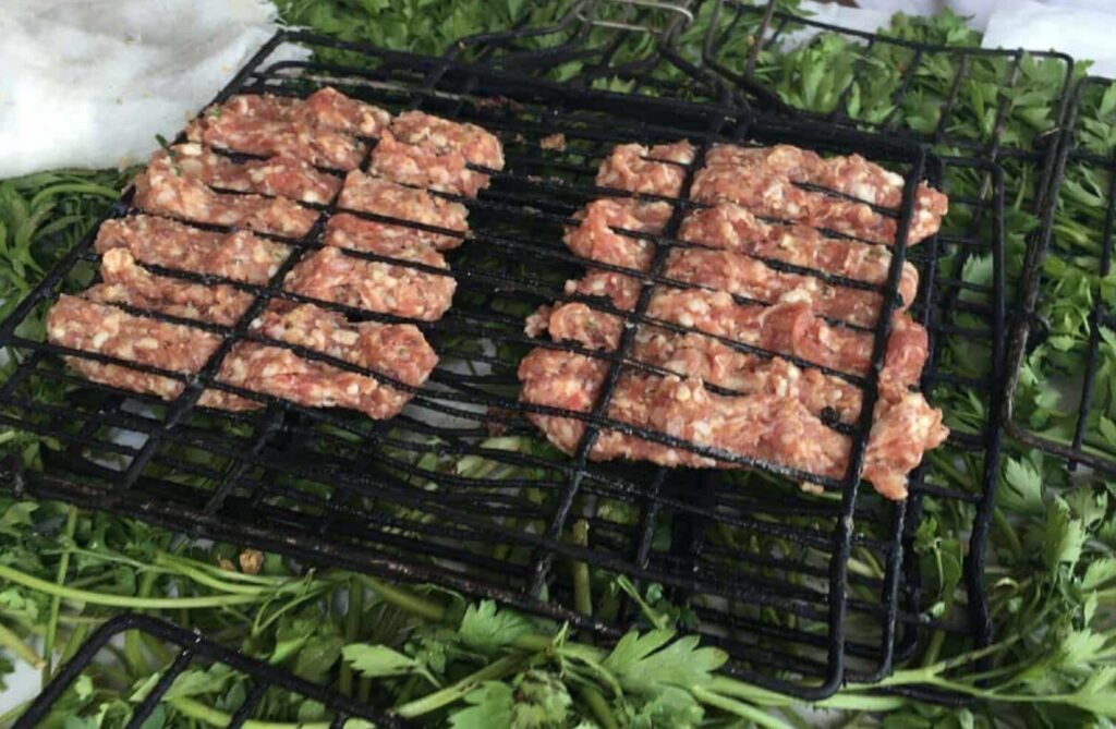 In rural homes, the meat is often minced by hand, creating a texture and aroma that’s distinct from machine-ground meat. It’s then shaped into patties or skewers and cooked over charcoal — filling the air with smoky, mouthwatering scents.