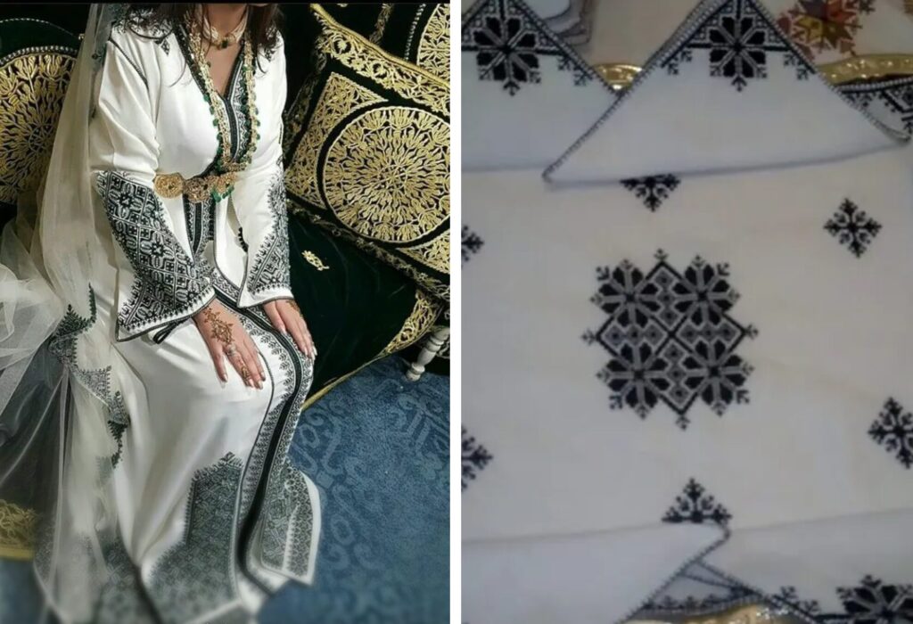 - Fez Embroidery (Tarz Fassi): Known for its geometric precision, delicate silk threads, and monochrome style — usually white or gold on fine linen.
