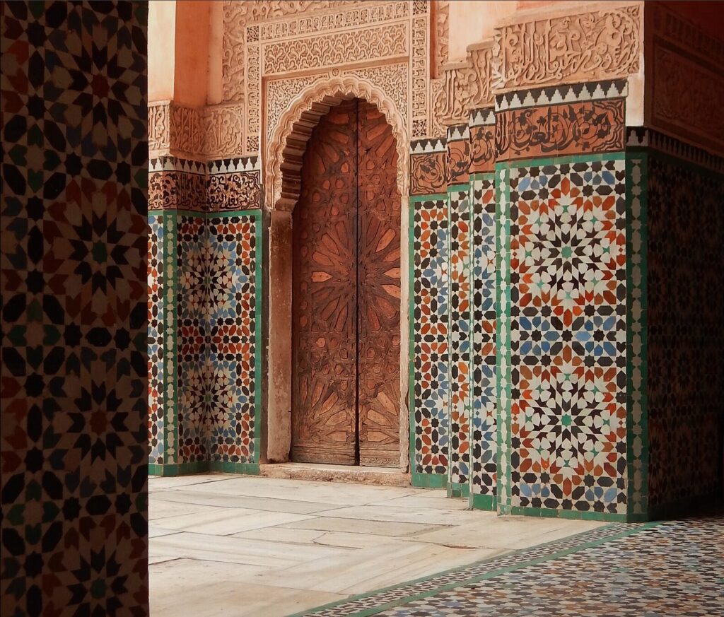 You can see exceptional examples in Fès (Bou Inania Madrasa), Marrakesh (Ben Youssef Madrasa), and Rabat (Mausoleum of Mohammed V).