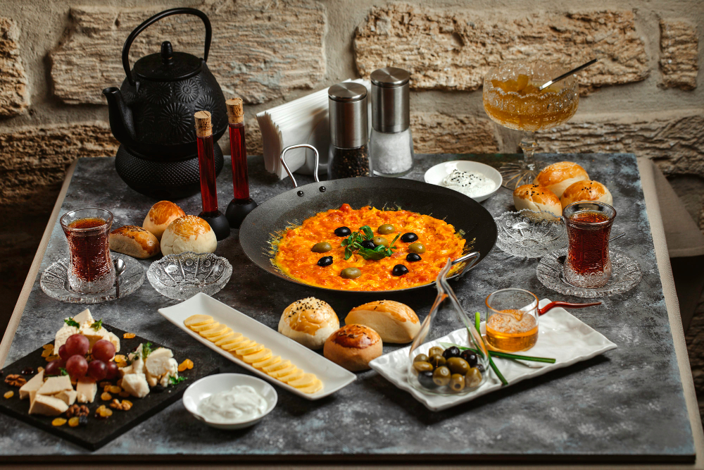 It’s often a mix of both. Sweet honey, jam, and pastries are paired with savory olives, cheeses, and breads.