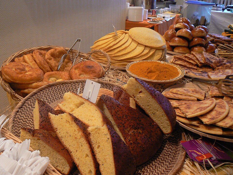 Moroccans enjoy a variety of breads (msemen, baghrir, khobz), spreads like honey, cheese, and amlou, along with olives and mint tea.