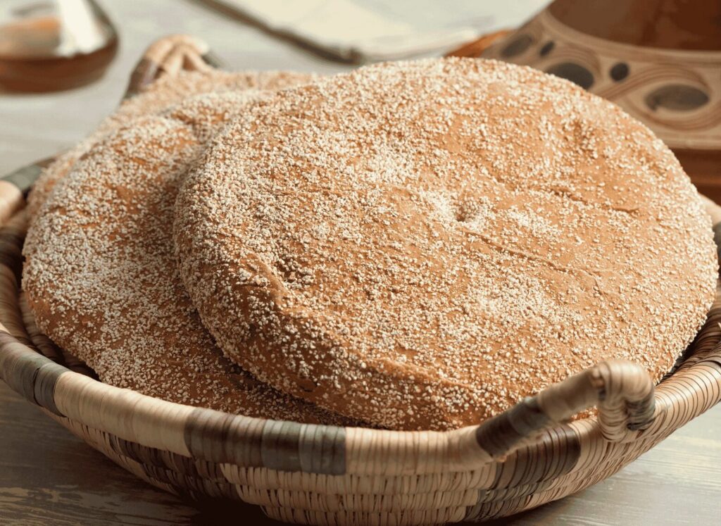 Khobz is the essential Moroccan bread, often paired with amlou, a spread made from argan oil, almonds, and honey. This combination is both traditional and healthy.